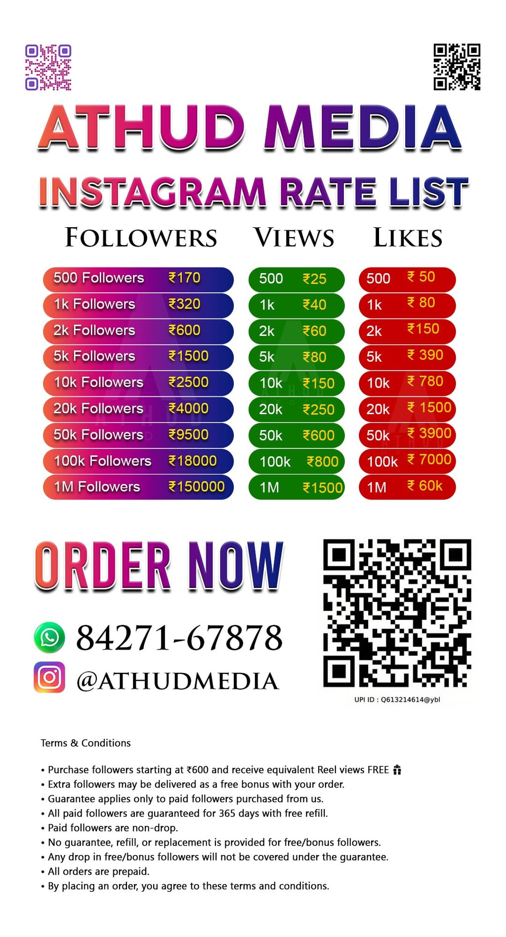 DM on Instagram for Order : @athudmedia